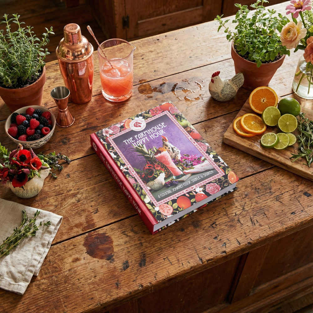 Step into happy hour, the Blue Stallion Farm way. The Farmhouse Happy Hour invites you on a cocktail journey through the coop, the stable, and beyond—where every corner of the farm becomes a place to gather. Inspired by the land, the animals, and the timeless beauty of Old Florida, each chapter features cocktails stirred in the gardens, shaken in the stable, and sipped beside the chickens in the coop. More than a collection of recipes, this book is a celebration of farm life, connection, and the simple joy of raising a glass together.