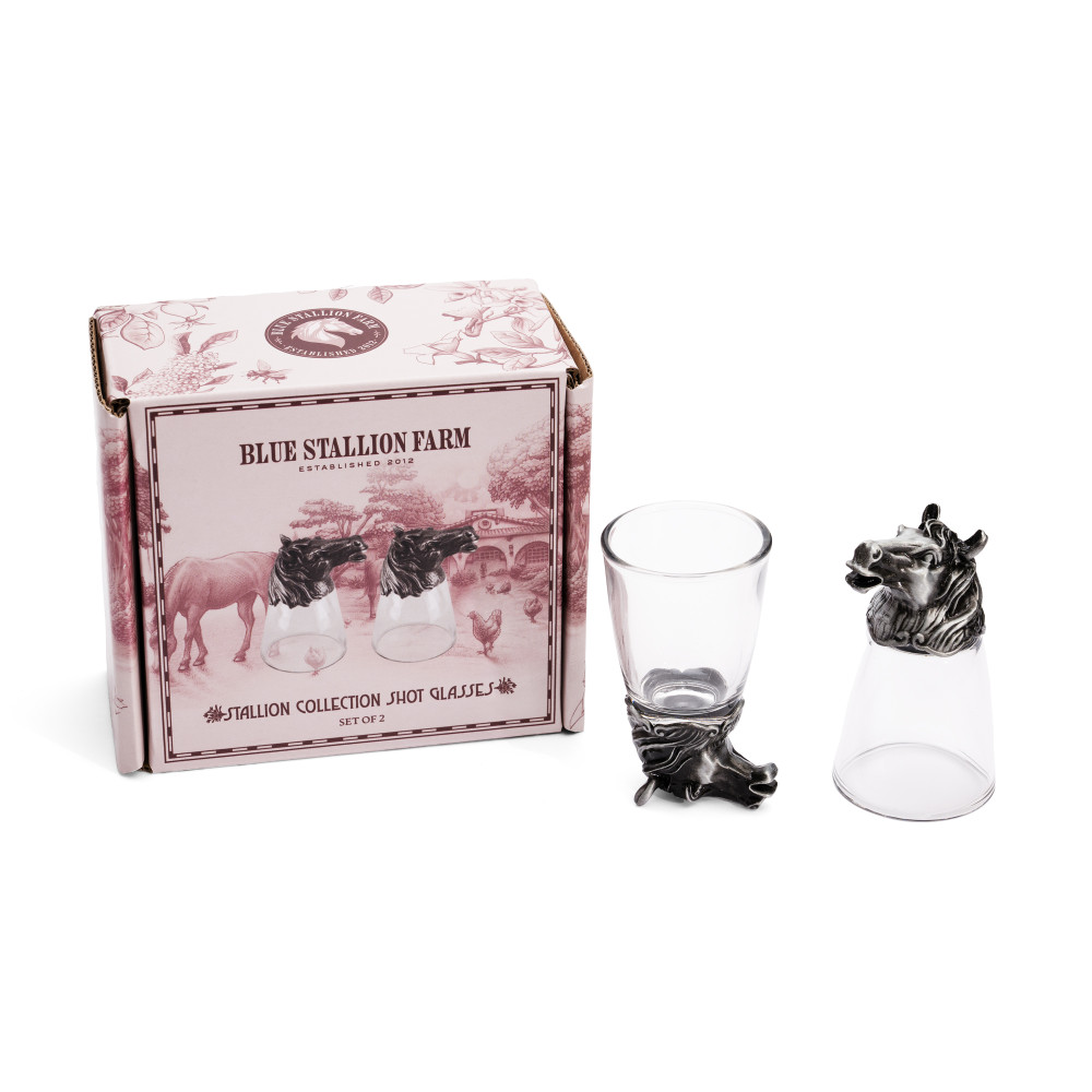 Raise a little toast, farm-style. Our Shot Glasses bring a playful touch of Blue Stallion Farm to every gathering- perfect for celebrating big moments or simply sharing a laugh around the table. Whether it's a spirited pour or a fun keepsake from the farm, these glasses add a dash of elegance and charm to every cheers.